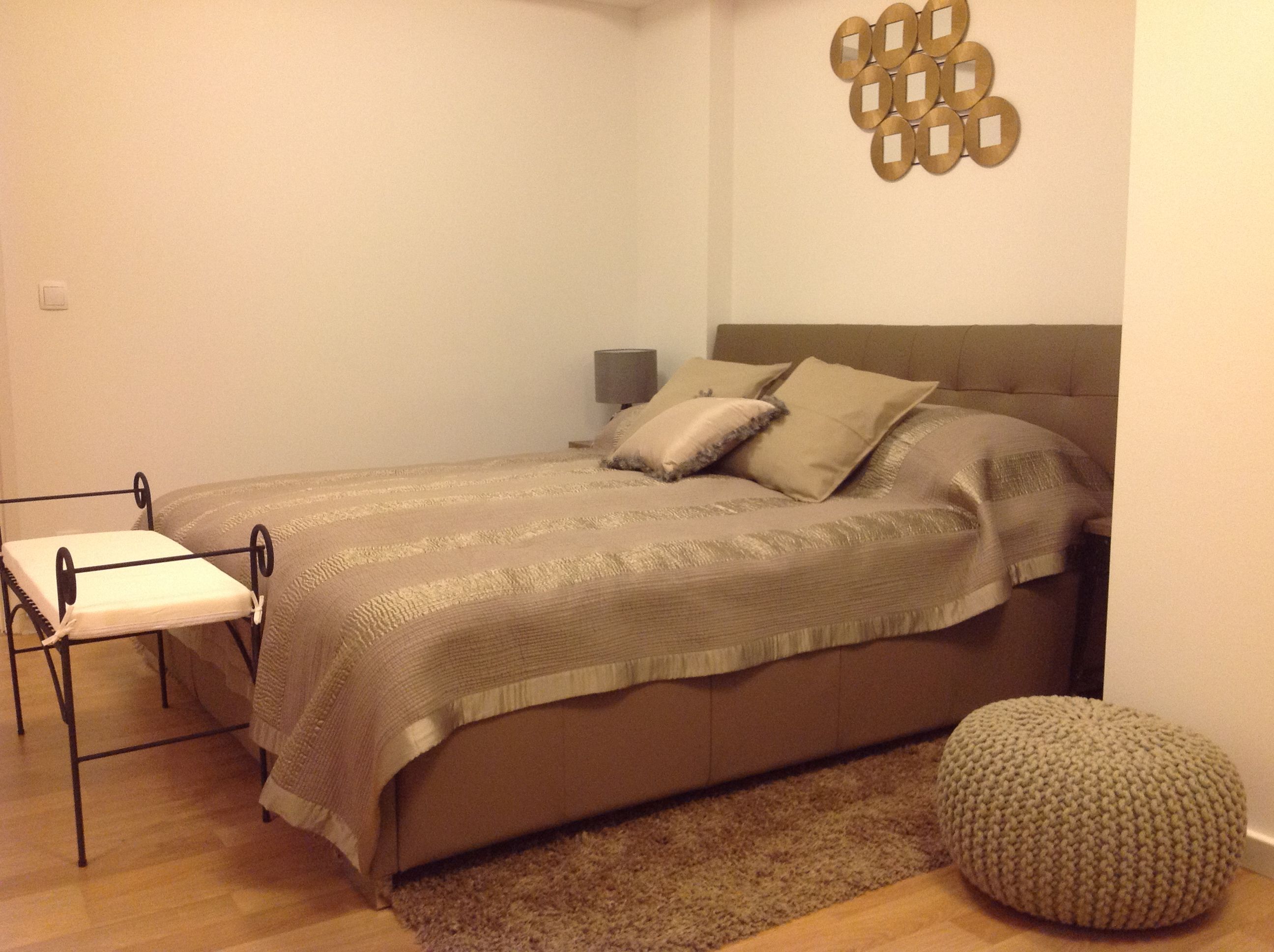 Klimatizirana spavaća soba, osim izuzetno udobnog bračnog kreveta, ima i pripadajuću zasebnu kupaonicu (WC/tuš), ormar za garderobu, sef te sve potrebne sadržaje za miran san. Iz spavaće sobe staklena stijena vodi na prostranu terasu gdje možete provesti vrijeme uz jutarnju kavu ili ugodno cjelodnevno druženje.